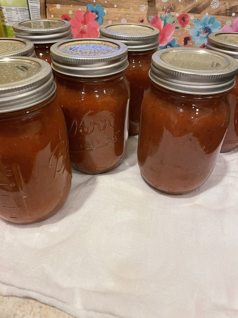 Since my first year I have canned tomatoes, corn, chicken, seasoned ham, beef, broth, tomato soup (another rebel recipe), apple pie filling, apples, applesauce, backed beans (rebel recipe), cranberry juice, grape juice (rebel recipe), pizza sauce, carrots, beans, peas, pickles, jams, salsa verde, strawberry, mincemeat, bell pepper, potato, dandelion and banana syrup (rebel recipe), tomato paste, ketchup.